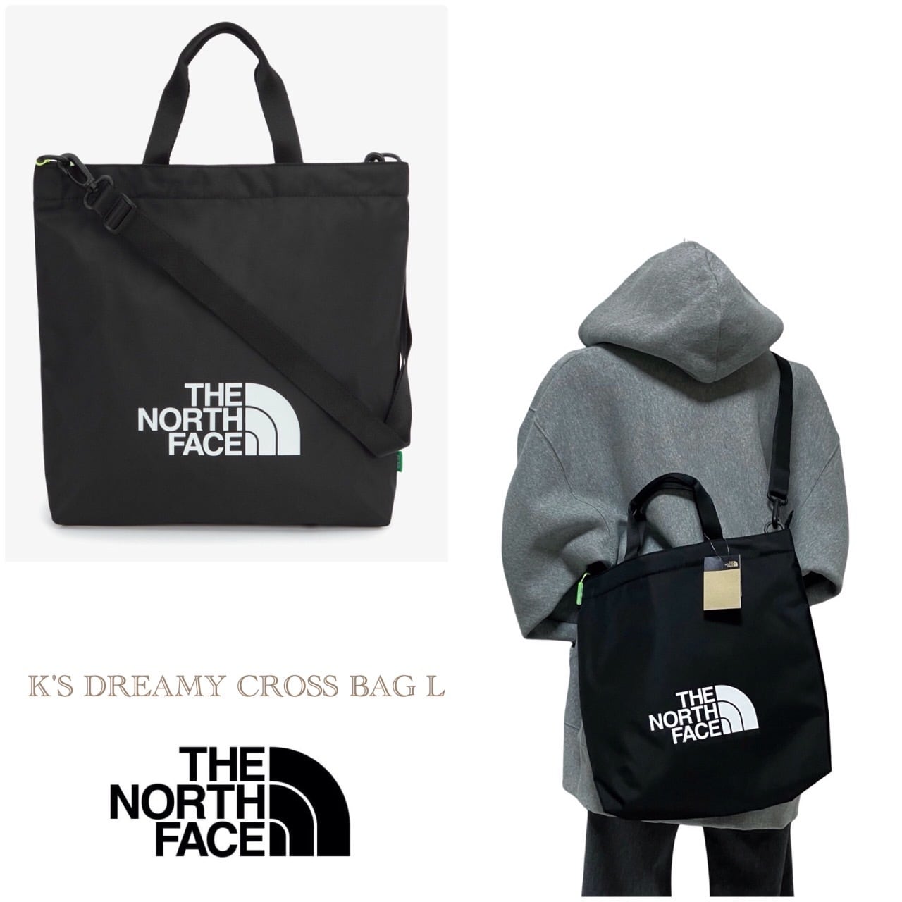 THE NORTH FACE ノースフェイス K'S DREAMY CROSS BAG L 2wayトートバッグ A4収納 メンズ レディース ブラック色 海外限定