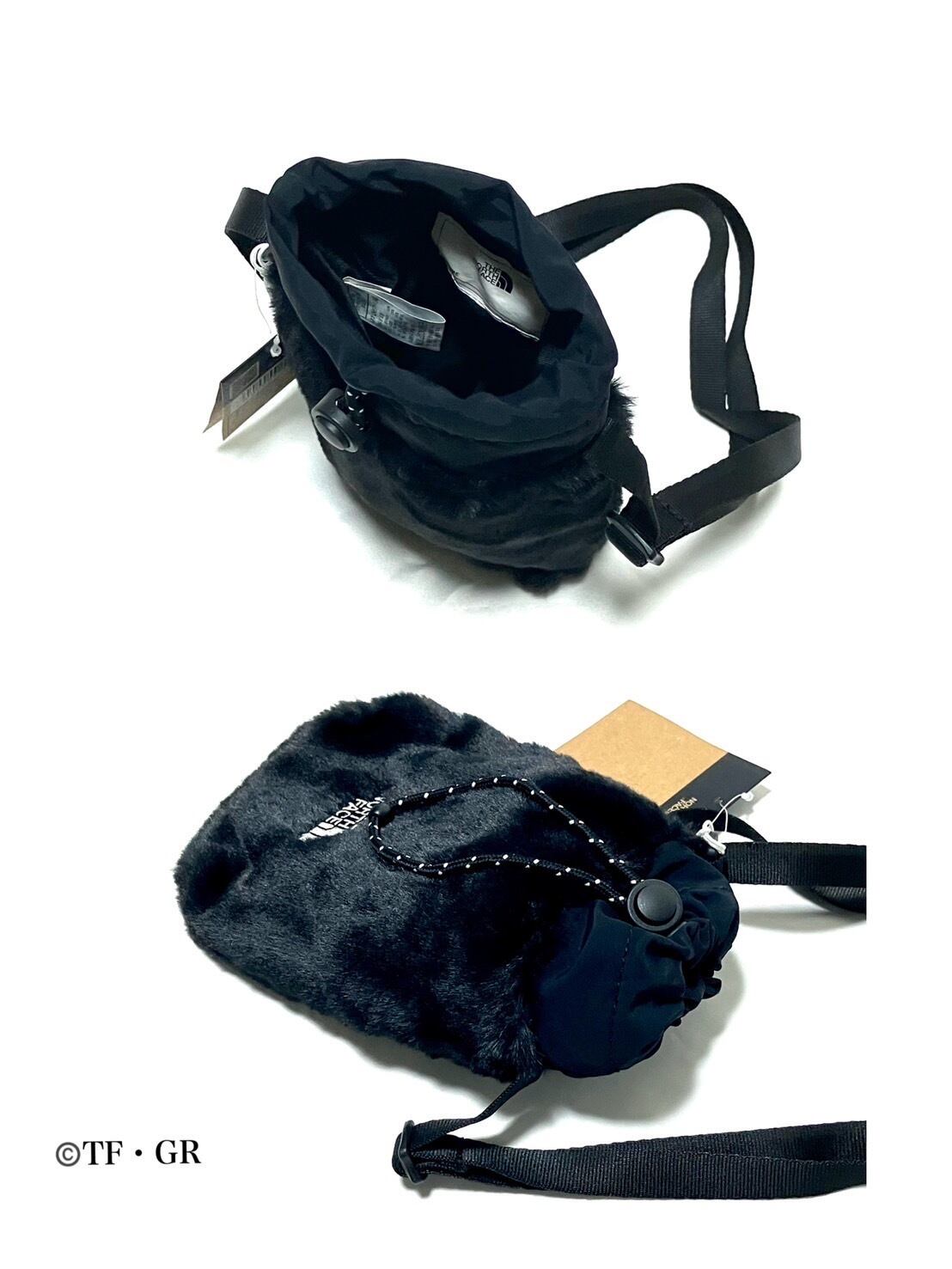 THE NORTH FACE ガールズ ファー クロスバッグ ショルダー ストリングバッグ 巾着バッグ 小物収納 ブラック色 海外限定